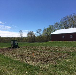 Over the May 5th weekend, 12 planting rows were measured, stakes were grounded, the peat moss and compost were laid, and the soil additives were spread. This past week, the rototilling was completed as well.